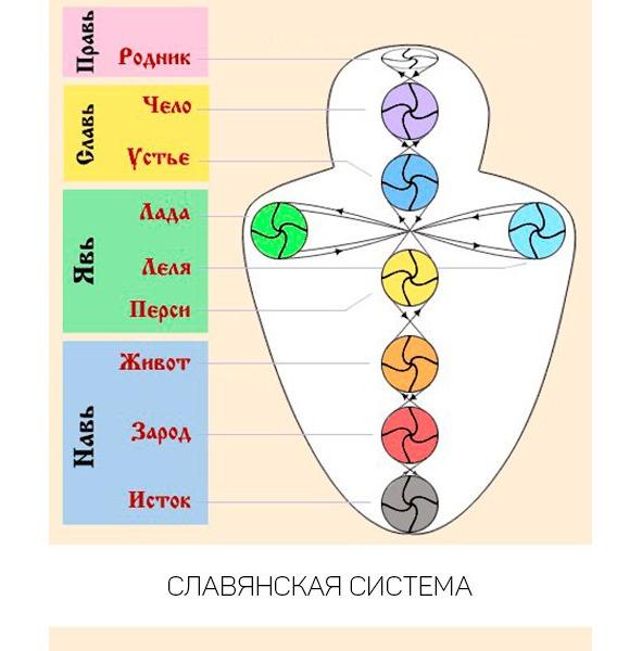Во второй системе 17 чар, и называются они «Родники Силы»: Вышень; Крышень; Чело; Темя; Явло; Горло; Ладина; Лад; Лада; Ярло; Лель; Леля; Живот; Исток (Жила); Чрево; Зарод; Вий.