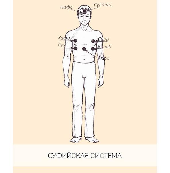 В суфизме (эзотерическом исламе) энергетические центры именуются «латаиф», и их 7. Идрис Шах (1924 — 1996) в книге «Суфии» пишет: