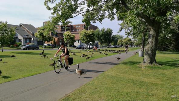 Уже много лет как власти Большого Монреаля активизировали работы по прокладыванию новых дорожек, в том числе и с тем, чтобы остров можно было полностью объехать по кольцевой трассе. Не удивительно поэтому, что весь город заполнен велосипедами, прикованными цепями к оградам, столбам, паркометрам, перилам, лестницам и так далее, где они стоят круглый год — под зноем, проливными дождями, метровыми сугробами. Далеко не все жители делят свои жилища с двухколесным другом! И хорошо, если им выделяется местечко хотя бы на балконе!