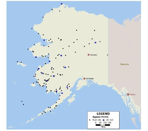 Отправка грузов системы Bypass mail производится из аэропортов Анкориджа и Фэрбанкса. Перевозки осуществляются в 16 региональных центров и до 120—130 удаленных поселений[2] (Рис. 1). В региональные хабы доставку обеспечивают пять наиболее крупных авиаперевозчиков, а малонаселенные пункты и деревни обслуживают порядка 20—25 буш-перевозчиков[3].