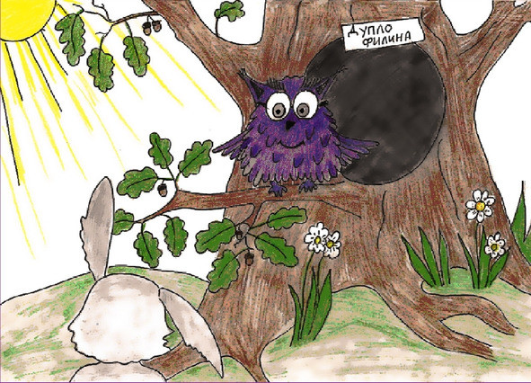 Филин любил подремать ранним утречком в дупле старого дерева. Он тщательно запоминал все детали своих сновидений, чтобыпозднее, при свете Луны и звёзд, заниматься их разгадыванием. Много, ох, как много удавалось ему узнать из этих снов про мир, про обитателей леса и про себя самого! Поэтому он любил спать и не любил, когда кто-нибудь ему мешал. Особенно, если это был Заяц, которого Филин считал редкостным балбесом.