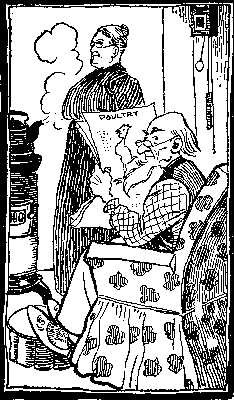 That Evening he was back at his own Fireside, with the Bunged-Up Feet resting in Carpet Slippers. As he sat and read the Poultry Magazine, Aunt Mehely looked at him sidewise, and full of Suspicion said, "I s'pose you just Played Hob there in the City."