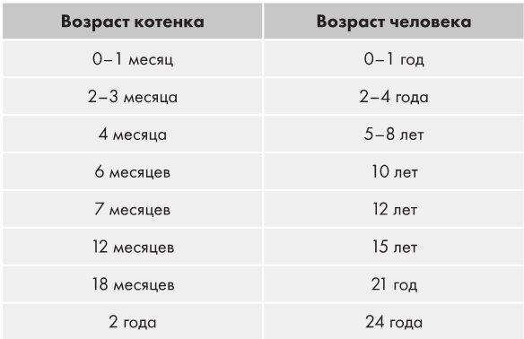 Таблица соответствия возрастов кошек и людей
