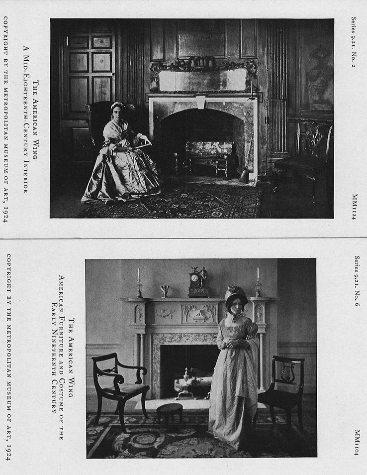 1.2. Две открытки, изданные Метрополитен-музеем. Американское крыло. 1924. Модели в платьях, полученных в дар от наследников Ладлоу (11.60.232a,b и 11.60.230). Из собрания автора