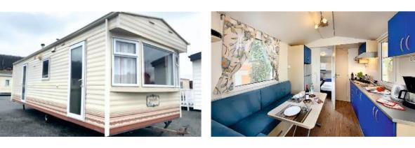 К стационарным караванам относятся большие Мобильные дома, которые тоже оборудуются дышлом, колесами и упорными ножками, необходимые для выравнивания жилого дома на стоянке. Такие трейлеры нельзя транспортировать по дорогам общего пользования, т.к. габаритные размеры 3 м х 8 м, а это является «негабаритным грузом». Перемещение по дорогам возможно только на специальной платформе, или на своем шасси по закрытой территории. Мобильный дом имеет множество планировок. Внутри также устанавливается традиционная бытовая техника. Подключение к электричеству, канализации и воде, точно такое же, как у «Tiny House». Мобильный дом рассчитан на круглогодичное проживание. Наибольшую популярность мобильные дома получили в Англии и США. Устанавливать его можно там, где запрещены постройки, имеющие фундамент, и эксплуатировать как постоянное жилье.