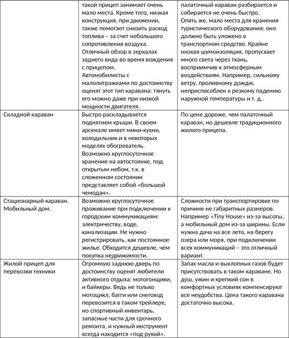 Сложные механизмы трансформации складывания, тщательно продуманное жилое пространство, быстрая разборка и сборка в рабочее состояние, а также невысокие цены, в сравнении с традиционными жилыми прицепами, делают такие трейлеры популярными среди рыбаков и активных автотуристов, которым не важно длительное мобильное проживание. Тем более, что спортивное снаряжение: велосипеды, доски для серфинга можно перевозить сверху прицепа, у становив специальные рейлинги, или на дышле каравана.