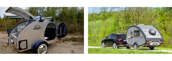 Длина кузова каплевидного каравана менее четырех метров. Такой трейлер легкий, имеет хорошие ходовые качества и может буксироваться маломощным автомобилем. Это простой в оснащении классический туристический караван с двумя фиксированными спальными местами и «спартанским» комфортом. Полная масса такого жилого прицепа, как правило, не более 750 кг. Поэтому для управления таким автопоездом не требуется категория прав «В+С». Из-за своих компактных размеров внутри мало пространства для ночлега и хранения вещей. Такой караван имеет 1 -2 места для сна и не дает какого-то большого комфорта. Зато невысокая цена и отличная манёвренность компенсирует все недостатки.