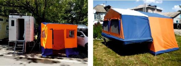 Рисунок 1.9. Прицеп — палатка российского производства. Слева — современное исполнение, производства г. Самара. Справа — «Скиф 2М» произведённый в СССР.