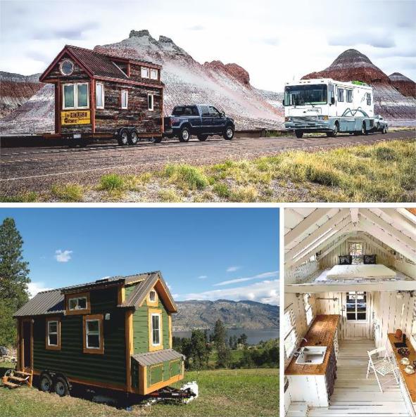 Планировок может быть великое множество, т.к. в отличии от жилых прицепов такие трейлеры изготавливаются по тем же технологиям, что и каркасные стационарные дома. В России такие караваны строят энтузиасты — любители. Это связано с тем, что не нужно вносить изменения в регистрационные документы трейлера, т.к. платформа, на которых проектируются «Tiny House», предназначены для перевозки груза и регистрируются в ГИБДД еще до постройки на нем домика, который и является «грузом».