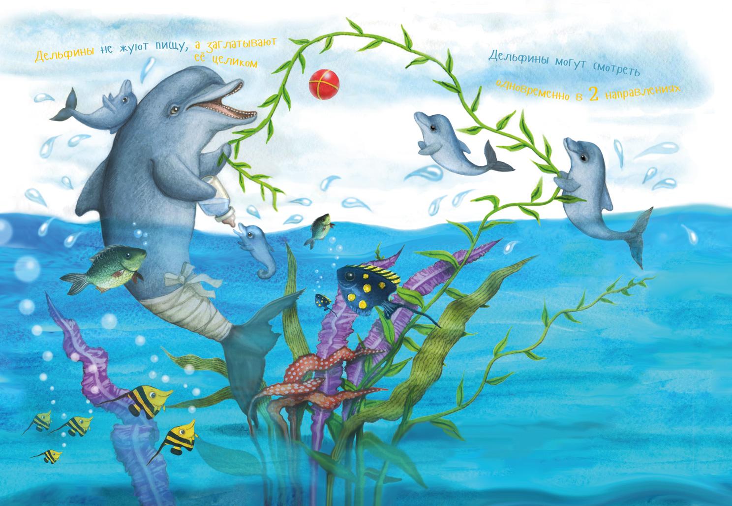 А-а! Не люблю одиночества, люблю всё делать вместе с товарищами. Если рядом два-три друга, жить гораздо веселее. Можно играть, охотиться, болтать обо всём на свете. Иногда мы собираемся вместе — по сто, даже по несколько тысяч дельфинов. Чтобы принять важное решение. У каждого дельфина есть не только имя (оно похоже на особый свист), но и право высказать своё особое мнение. Вожака у нас нет — мы ценим силу коллективного разума!