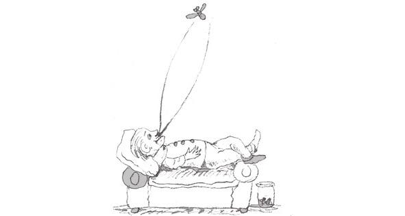 Мухи ведь повсюду летают и всё пре-всё видят и всё про всё знают. Так вот и читает себе бывало Колотушкин свежие новости или просто глядит на живые картины покуда не задремлет, и тогда мухи садятся к нему на усы и начинают рассуждать о том как им все-таки хорошо, что лучше того в мире и быть не может. И вообще хорошо, что они мухи, а не какие-нибудь глупые клопы-тараканы, т.е. совершенно дикие и необразованные насекомые существа. А мухи они все же совсем совсем другие творенья, они вроде как избранные. Они правда и сами не знают кем, куда, зачем и почему избраны, но им того и знать видать не обязательно. Им и так хорошо.