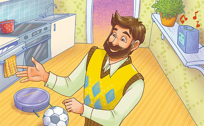 — Здравствуй, дядя Кузя. Я пыль вытер, игрушки собрал, посуду помыл — и так устал. Вот бы за меня какой-нибудь робот всё делал!