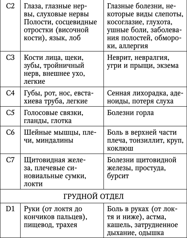 Нервы, выходящие из шейного отдела позвоночника, иннервируют в основном руки, плечи и голову.