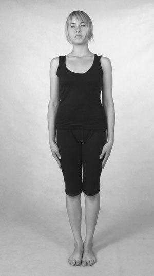 1. Лечь на спину – ноги прямые, сведены вместе, пятки и носки соединены, носки вытянуты. Руки вдоль тела, ладони лежат на бедрах, пальцы соединены вместе и направлены в сторону ступней.