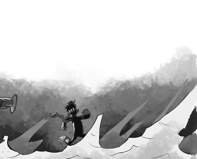 Своими двумя тыльными глазами я увидел, что бабушка отстаёт. Мой похожий на хобот сенсорный усилитель, который растёт из верхней части спины, должно быть, почуял её страх. Он отлично улавливает чувства окружающих, а также усиливает все наши ощущения, такие как вкус, осязание, зрение и слух. Мой усилитель инстинктивно потянулся к бабушке, стремясь ухватить её за руку. Она отмахнулась и шлёпнула его, и по моему телу пробежала волна боли.