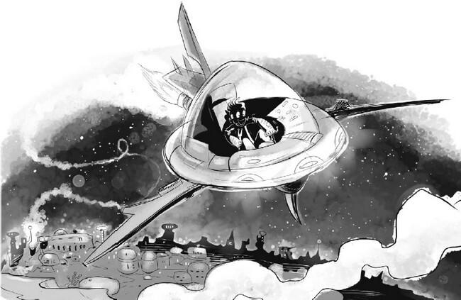 Когда я пришёл в себя, то понятия не имел, где нахожусь или сколько времени прошло. Бабуля Морщинка запрограммировала мой корабль таким образом, чтобы он опустился на планету Земля, но я не знал, насколько продвинулось моё путешествие. Я повернул все свои шесть глаз вперёд и обозревал сквозь ветровое стекло панорамный вид. «Ого, космос такой красивый!» – подумал я, глядя на закручивающуюся впереди туманную спираль, испещрённую двумястами миллиардами звёзд. Перекатив глаза на левую сторону, я заметил мерцающую жёлтую планету, окружённую светящимися кольцами коричневого, серого и розового цветов.