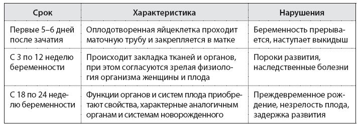 Организм будущей матери, становясь для ребенка его внешней и внутренней средой, идеально приспосабливается для его вынашивания. От состояния женщины, от того, насколько благополучно протекает ее беременность, напрямую зависит здоровье ребенка. Особенно важно учитывать критические периоды (см. табл. 1.1).