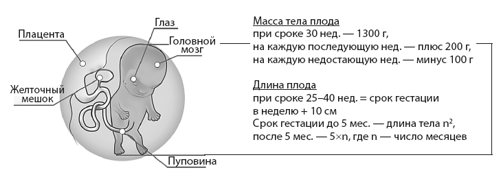 Формулы по определению массы тела плода и его длины представлены на рис. 1.4.