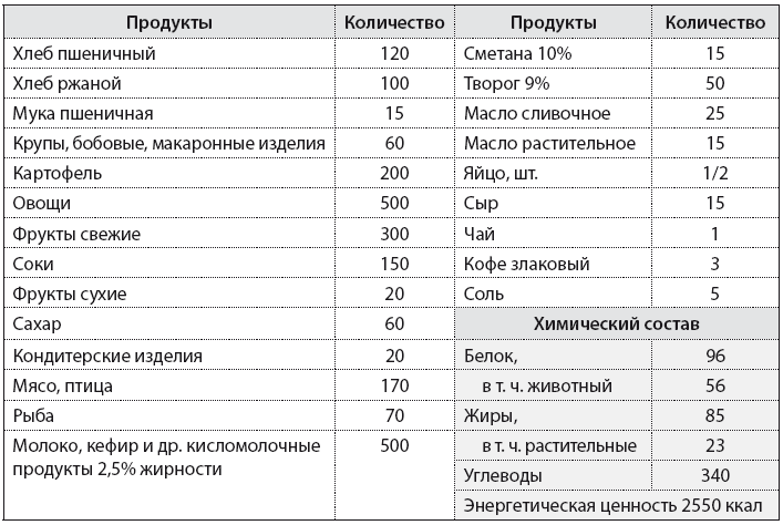 Таблица 1.7. Набор продуктов для питания во второй половине беременности (г/сутки)