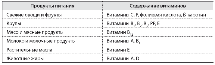 Особенно важны витамины во время беременности. Они принимают участие в обмене белков, жиров и углеводов, а также окислительных процессах. Большинство витаминов не синтезируются организмом или синтезируются в недостаточном количестве и должны поступать извне с продуктами питания (см. табл. 1.4). При длительном отсутствии витаминов в пище развиваются тяжелые заболевания: гиповитаминозы или авитаминозы.