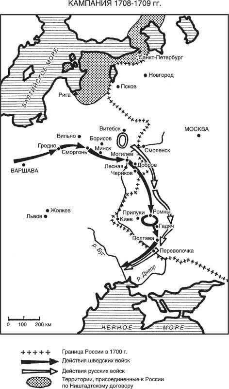 Как и в 1705 г., Карл XII начинает операцию в самый разгар зимы. Он выступает из Саксонии и движется на Познань. Король рассчитывает отвоевать балтийские провинции, разгромить русскую армию где-нибудь между Псковом и Новгородом и идти на Москву, чтобы продиктовать там условия мира. Его уверенность в победе настолько непоколебима, что он заранее назначил генерала Шпара комендантом Москвы. В феврале 1708 г. шведы захватывают Гродно. Русские отступают к Сморгони, оставляя за собой лишь руины. Форсированные марши измотали шведов. Они решают перезимовать между Сморгонью и Вильно. Русские занимают позиции между Витебском и Дубровной. Шереметев и Меншиков расположились так, чтобы, при необходимости, перекрыть дороги, ведущие на Санкт-Петербург и Москву.