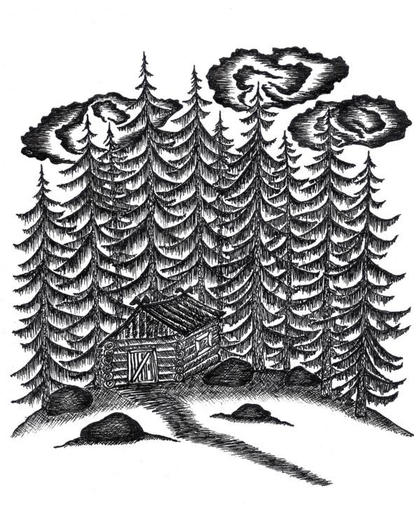 Хельда жила в дремучем еловом лесу, где даже днём были сумерки. Её избушка с покосившейся крышей только отдалённо напоминала жилой дом. Мы вышли к её убежищу по едва заметной тропинке. Дорожка часто петляла и извивалась между могучих стволов, казалось, даже деревья прячут колдунью от непрошеных гостей.