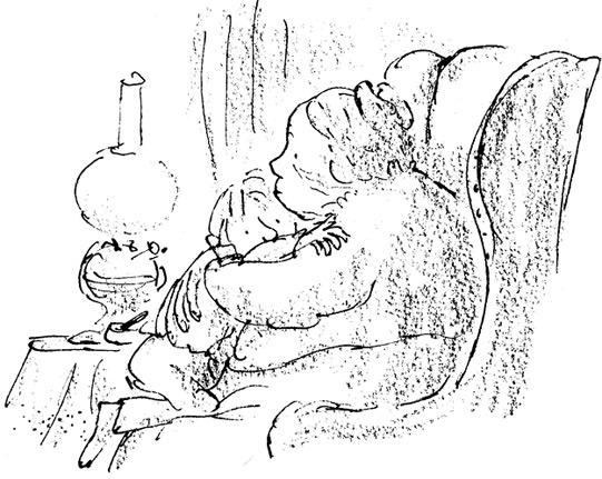 Мы сидели в большой гостиной бабушкиного дома в Осло, я уже собирался идти спать. Шторы в доме у бабушки никогда не задергивались, и я видел, как большущие хлопья снега тихо падают, падают, укрывая мир за окном, черный как смоль. Бабушка была немыслимо старая, морщинистая, толстенная, грузная, плотно окутанная серыми кружевами. Она величаво сидела в кресле, заполняя его до последнего сантиметрика. Даже мышка не смогла бы протиснуться в уголок, если бы захотела посидеть с нею рядом. А сам я, семилетний, пристроился на полу у ее ног, в пижамке и тапочках.