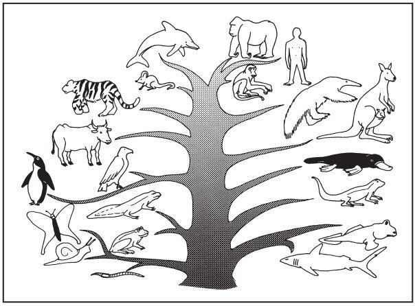Однако рисунки, подобные этому, неизбежно вводят в некоторое заблуждение, поскольку на самом деле они показывают только виды, сохранившиеся к настоящему времени, или те, о которых мы знаем по ископаемым остаткам. Виды возникали в течение всей истории существования жизни на Земле и вымирали, когда окружающий мир изменялся и переставала существовать среда, к которой они были приспособлены. Многие из них исчезли без следа. Следует отметить, что в истории органической жизни развитие и вымирание видов происходило в менее драматичной форме, чем сейчас, когда катастрофические воздействия человечества на мировую экологию заметно ускорили этот процесс и привели к необратимым изменениям среды обитания.