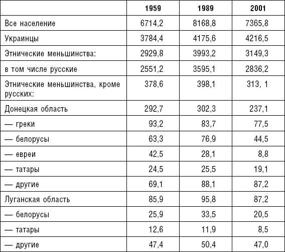 Изменения численности и этнического состава населения Донбасса (тыс. чел., в процентах)