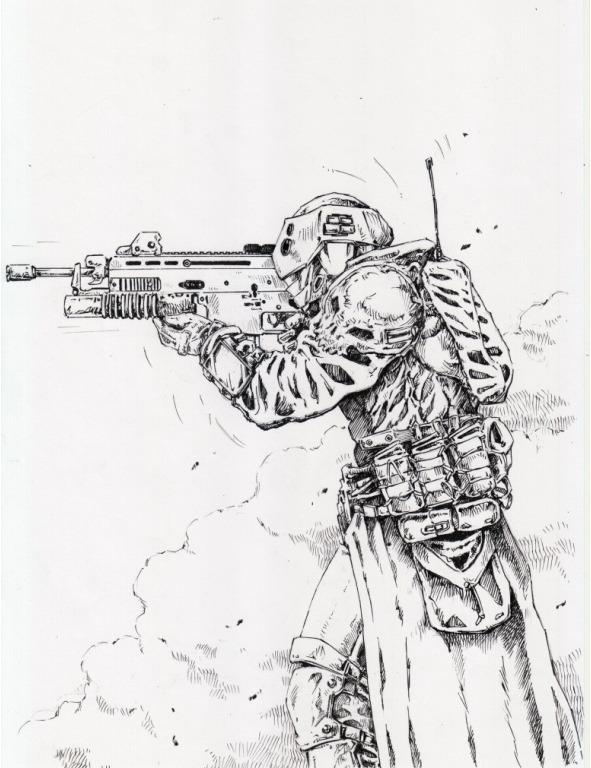 [19] УПЗО. Универсальный прибор зрительного ориентирования. Совмещает в себе ПНВ, тепловизор и бинокль, имеет форм-фактор тактических очков (не путать с баллистическими/стрелковыми очками, которые один в один с очками от солнца или спортивными, и пригодны для повседневного ношения). Выдумка автора. Имею полное право — у нас тут, скажем так, немного отдаленное будущее, поэтому можем самую малость и облегчить боевые будни солдата.