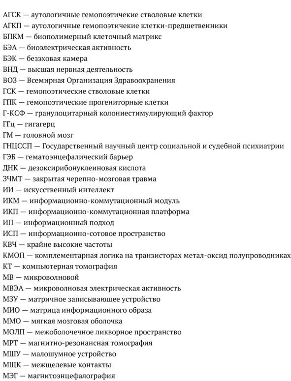 Создание этой книги было бы невозможным без помощи большого научного и практического коллектива математиков и физиков, увлеченно занимающихся проблемами нейроинженерии, возглавляемого Леонидом Игоревичем Брусиловским, ставшим соавтором двух глав этой книги и генератором новых идей по реализации новых нейроинженерных подходов; также без сотрудников клиники «НейроВита» клиническая часть нейроинженерных работ была бы просто невозможна.