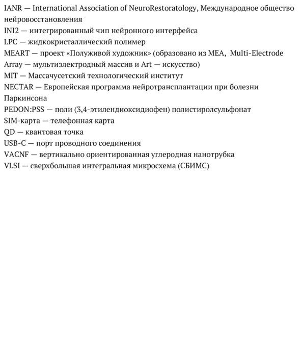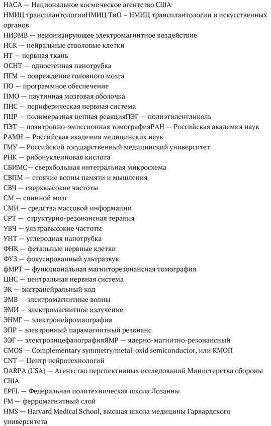 Целью написания этой книги была попытка осуществить систематизацию имеющихся знаний в этой области и введение в проблему нейроинженерии отечественных нейроученых и нейробиологов, врачей-специалистов, работающих в области неврологии, нейрохирургии, психиатрии, нейрофизиологии и лучевой нейродиагностики, а также предоставить объективную информацию для большинства инженеров-технарей и нейроученых, различных наших «продвинутых» читателей, интересующихся этой областью медицинской нейронауки, а также показать ее возможности и существующие реальные ограничения на современном этапе мирового научно-технического прогресса.