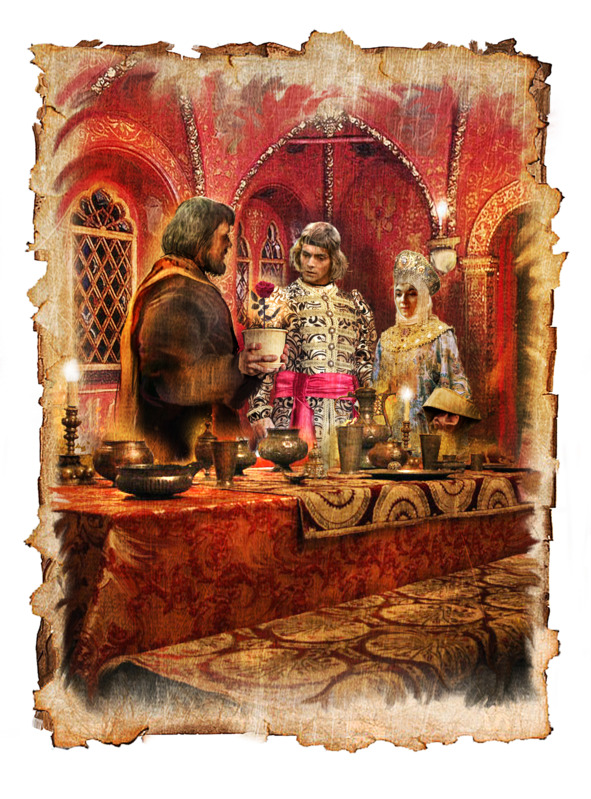 Один из таких незначительных разговоров и навёл молодую царевну на мысль о том, чтобы оживить ту самую розу, оную28 подарили брат с отцом на их свадьбу с царевичем. Этой мыслью она и поделилась с мужем. Тот, конечно, согласился, так как ни в чём не мог ей отказать, но при этом напомнил, что кувшин с живой водой находится в царских кладовых, а воспользоваться этим сокровищем без ведома батюшки не удастся. Тогда Милана решила сама поговорить с царём. Но в течение следующих нескольких дней он не появлялся в своём саду. Видимо был занят повседневными неотложными делами. Наконец государь со своей государыней смогли выкроить время для того, чтобы подышать ароматом цветов, который каким-то чудесным образом благоприятно влиял на их самочувствие.