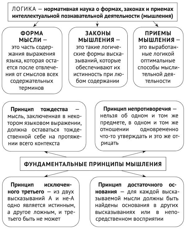 Предлагаемое пособие предназначено для экспресс-подготовки к экзамену по семестровому курсу логики, в котором обычно излагаются основные разделы без использования современного логического аппарата. Пособие не может заменить учебник – оно предназначено для систематизации перед экзаменом уже полученных в семестре знаний. С этой целью его разделы и главы сопровождаются схемами, в которых отражена структура и даны определения ключевых терминов соответствующего раздела.
