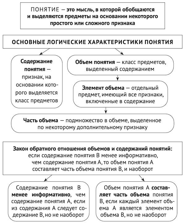 Понятие как форма мысли имеет две основные характеристики — содержание и объем.