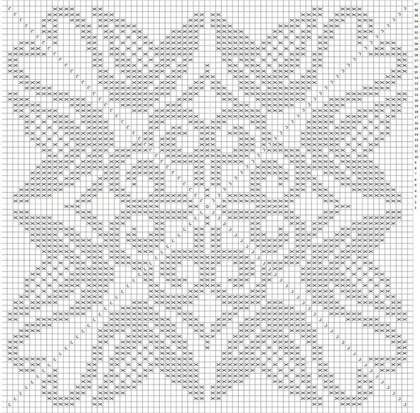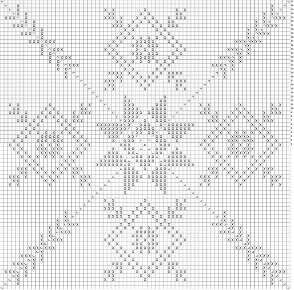 Что из себя представляет филейный квадратный мотив? Это квадрат связанный от центра в котором рисунок или часть орнамента повторяется на всех его четырех секторах.