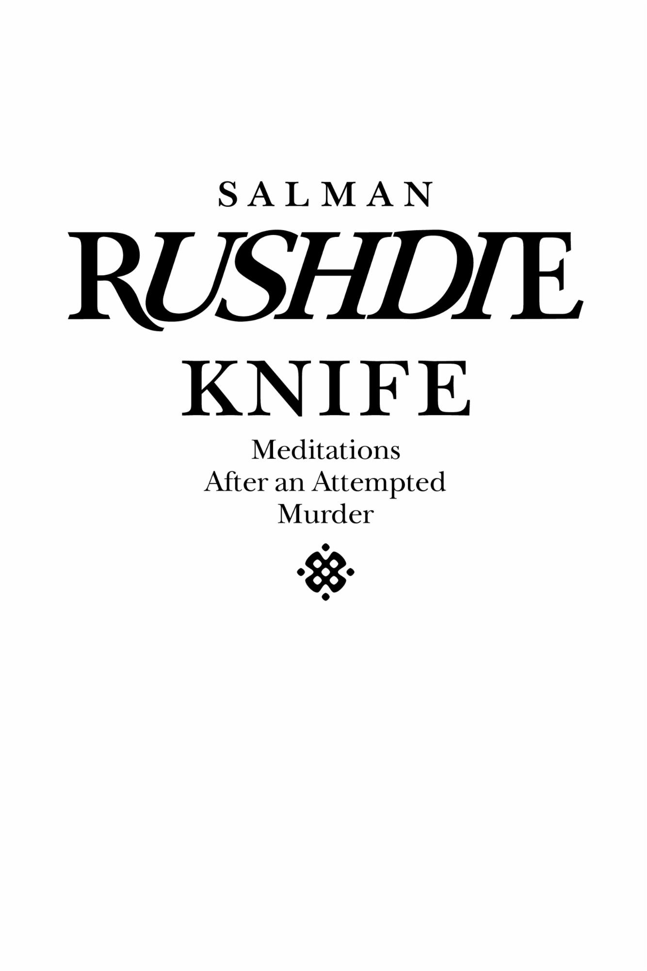 В четверть одиннадцатого 12 августа 2022 года, солнечным пятничным утром, к северу от Нью-Йорка я был атакован и почти что убит вооруженным ножом молодым мужчиной; это случилось сразу после того, как я вышел на сцену зала в Чатокуа, чтобы рассказать, как важно оберегать писателей.