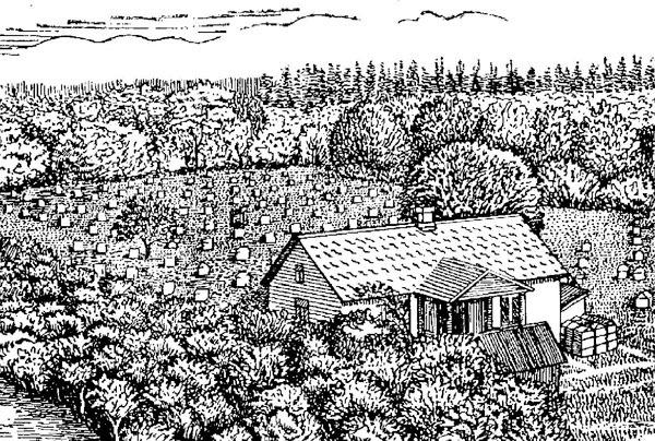 Площадь пасеки определяют из расчета 30–40 м2 на пчелиную семью, включая сюда и площадь под постройками.