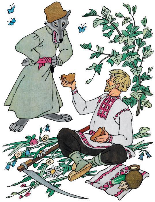 Как-то один крестьянин косил на лугу траву. Косил с утра, а к полудню приморился и присел передохнуть. Только достал из мешка хлеб, как из лесу выходит голодный волк.