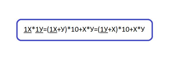 1Х*1У= (1Х+У) *10+Х*У= (1У+Х) *10+Х*У