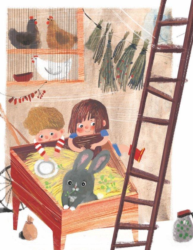А когда наступил вечер, они снова вернулись в сарай. Надо было запереть курочек. На улице уже было темно, в сарае – вообще ничего не видно. Кролик жалобно попискивал где-то в углу.