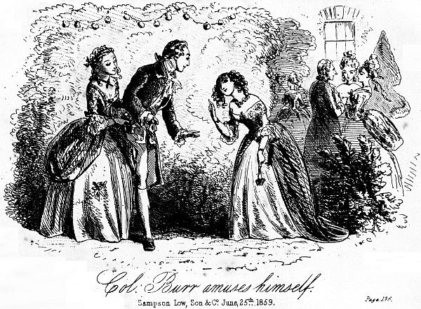 Meanwhile our Asmodeus will transport us to an easily furnished apartment in one of the most fashionable hotels of Philadelphia, where Col. Aaron Burr, just returned from his trip to the then aboriginal wilds of Ohio, is seated before a table covered with maps, letters, books, and papers. His keen eye runs over the addresses of the letters, and he eagerly seizes one from Madame de Frontignac, and reads it; and as no one but ourselves is looking at him now his face has no need to wear its habitual mask. First comes an expression of profound astonishment; then of chagrin and mortification; then of deepening concern; there were stops where the dark eyelashes flashed together as if to brush a tear out of the view of the keen-sighted eyes; and then a red flush rose even to his forehead, and his delicate lips wore a sarcastic smile. He laid down the letter and made one or two turns through the room.