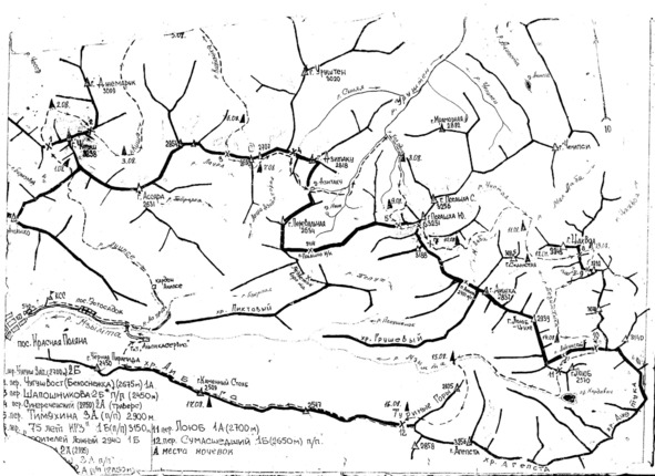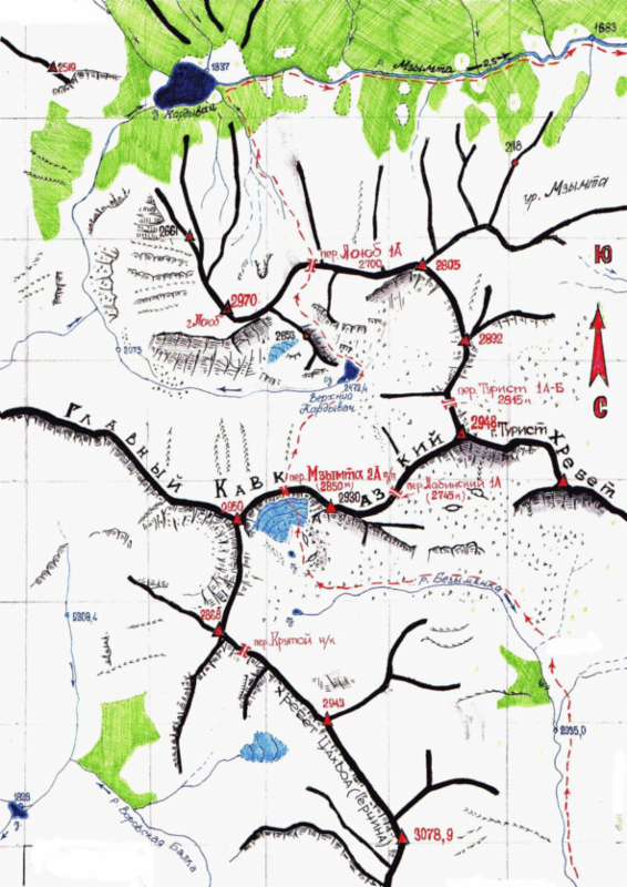 М 16. р. Безымянка — пер. Цахвоа + пер. Григора — р. Безымянка (восхождение на г. Цахвоа)