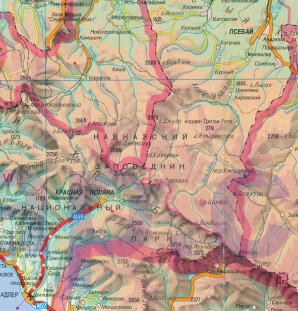 М 1. Долина Малой Лабы — пер. Аишха l — кордон Пслух — Красная Поляна.