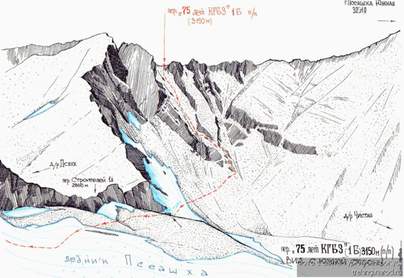 М 17. Перевалы с р. Чистой через ГКХ: Строителей и 75 лет КГБЗ
