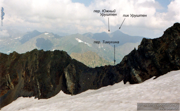 Идем торной тропой по дну гигантского желоба к его северо-восточной оконечности. Тропа полого спускается вдоль появившейся слева р. Уруштен. Альпийские луга сменяются березовым криволесьем. Внезапно справа открывается суровая долина р. Холодной, увенчанной г. Ю. Псеашха с л. Холодным в глубоком цирке. Оттуда течет р. Холодная, в месте ее впадения в Черную находится уступ перевального желоба Псеашха, имеющий вид естественного балкона. С него открывается вид сразу на две долины: поросшую дремучим лесом р. Уруштен и альпийскую р. Холодной. С этого уступа летом 1942 г. минометчики нашей армии вели обстрел немецких егерей, стремящихся прорваться через Псеашха к морю. Враг не прошёл.