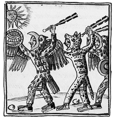 Воины ацтеков (орлы и ягуары). Миниатюра «Флорентийского кодекса» Бернардино Саагуна. XVI век