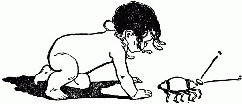 Tom looked up at the enormous wall, which seemed at least ninety miles high, and wondered how he should ever get up; but, when he hinted that to the truncheon, it settled the matter in a moment. For it whisked round, and gave him such a shove behind as sent him up to the roof in no time, with his little dog under his arm.
