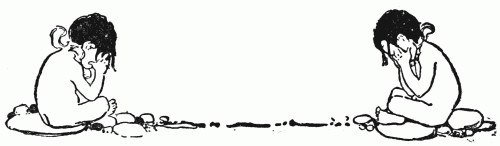 "Many a hundred years?" thought Tom; but he had seen so much in his travels that he had quite given up being astonished; and, indeed, he could think of nothing but Ellie. So he stood and looked at Ellie, and Ellie looked at him; and they liked the employment so much that they stood and looked for seven years more, and neither spoke nor stirred.