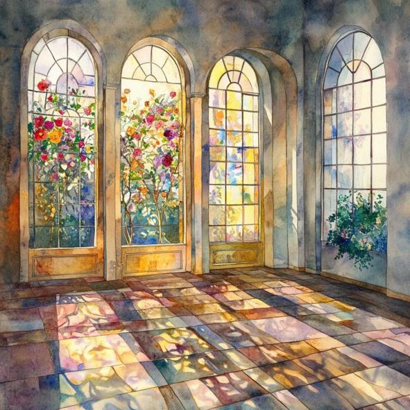 Это была светлая уютная двухкомнатная квартира с балконом, большими окнами, красивыми резными качелями, висевшими прямо посреди гостиной, и старинной ажурной люстрой. По утрам сквозь витражные окна спальни лился волшебный свет. И вечером в закатных лучах комната вновь наполнялась причудливыми узорами и цветами.